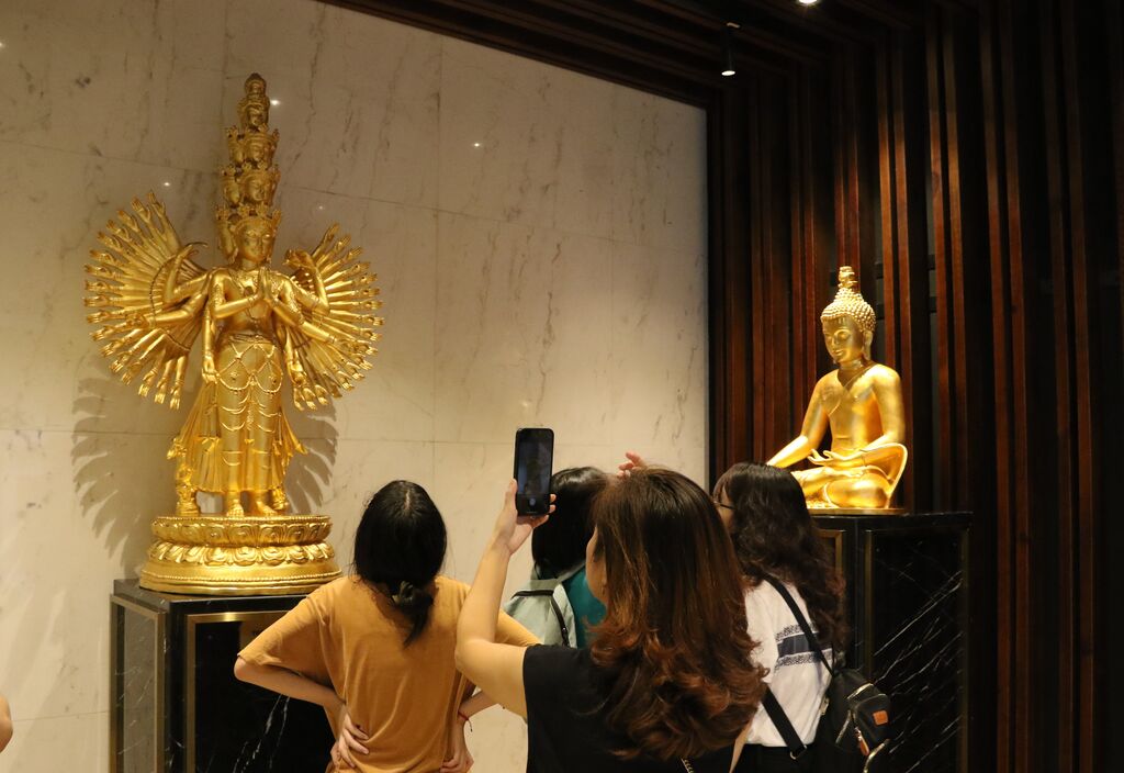 | La galerie d'art bouddhiste présente une collection riche de statues. |