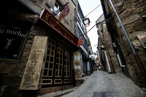 | Vue d'une ruelle déserte au Mont-Saint-Michel, le 20 mars. |