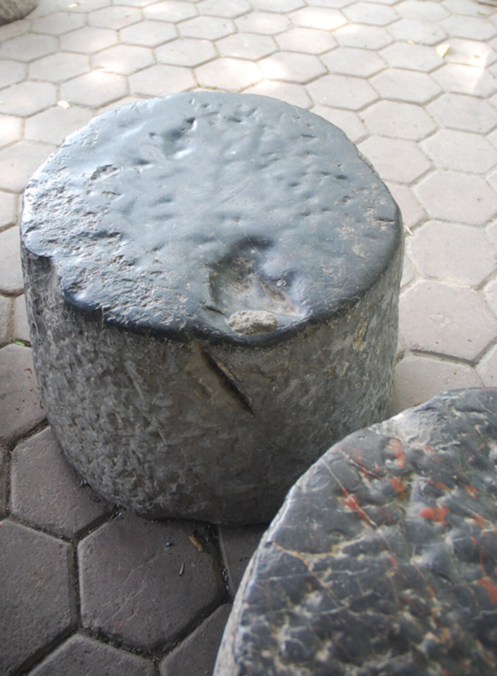 Chaque moulin pèse envion un quintal, mesure 50 à 60 cm de hauteur et possède un rayon de surface d'environ 30 cm.