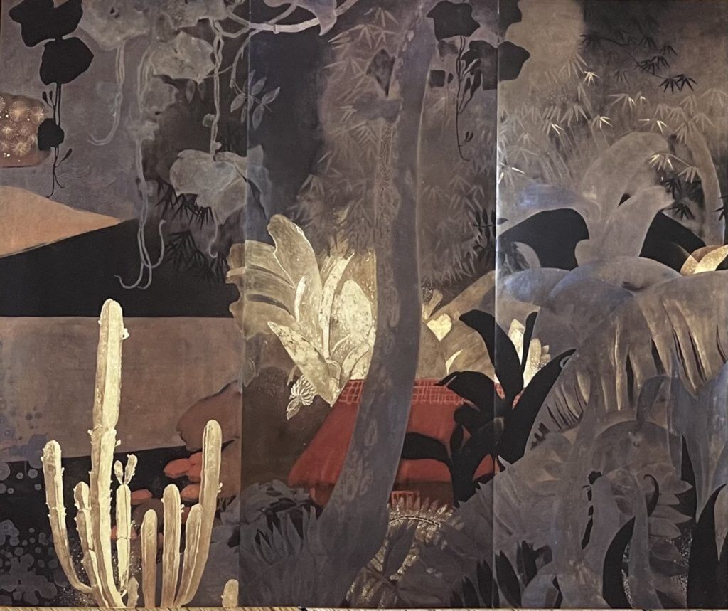 | Lê Phô, Paysage du Tonkin - Hanoi, entre 1932 et 1934. Paravent en trois panneaux de bois laqué. |