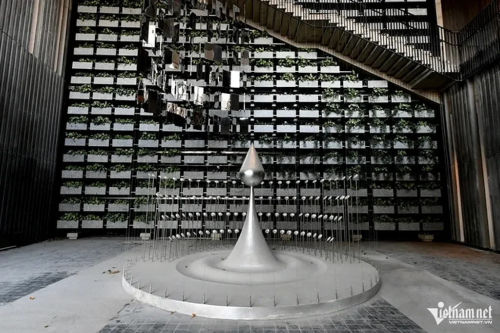 Une autre caractéristique importante est le symbole de la goutte d’eau, reflété dans les miroirs représentant la longue histoire de construction nationale et de défense du Vietnam, de l’époque des rois Hùng au XXe siècle. Le symbole renforce l’idée que depuis des milliers d’années, le peuple vietnamien a lutté pour la paix, endurant des épreuves et des sacrifices pour atteindre l’indépendance, la liberté et le bonheur.