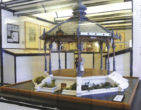| Les amoureux de Peynet dans le kiosque qui a contribué à les rendre célébres. |