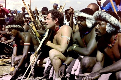 | Johnny Clegg lors d'une cérémonie zoulou, le 27 mars 1989, à l'occasion de son mariage avec Jennifer Bartlett. |