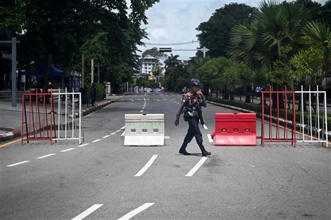 | La force de sécurité nationale du Myanmar à Yangon, le 19 juillet. |