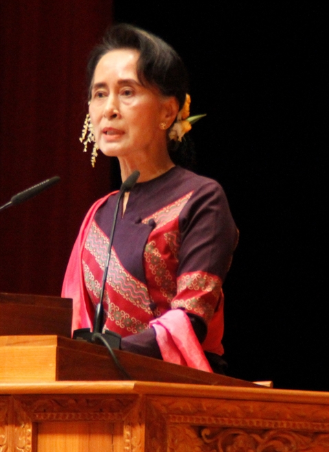 | La présidente de la Ligue nationale pour la démocratie (LND), Aung San Suu Kyi |