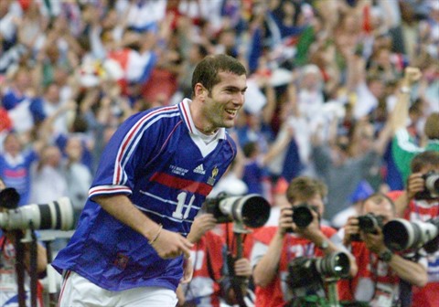 | Zinedine Zidane lors de la victoire contre le Brésil le 12 juillet 1998 en finale de la Coupe du monde. |