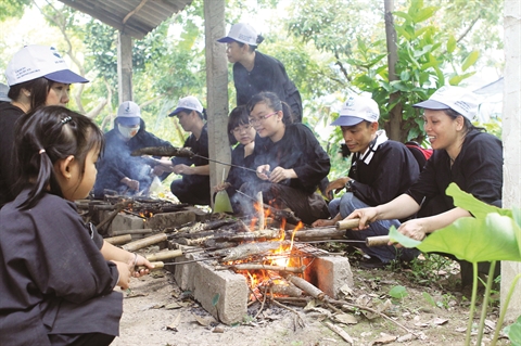 | Des familles tentent de faire de la cuisine typique du Sud en marge d’une excursion dans la province de Vinh Long. Photo : Thanh Vu/VNA/CVN |