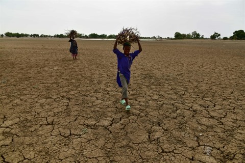 | Une femme et son fils transportent du bois dans la région de Diffa dans le Sud-Est du Niger, le 20 juin 2016. |