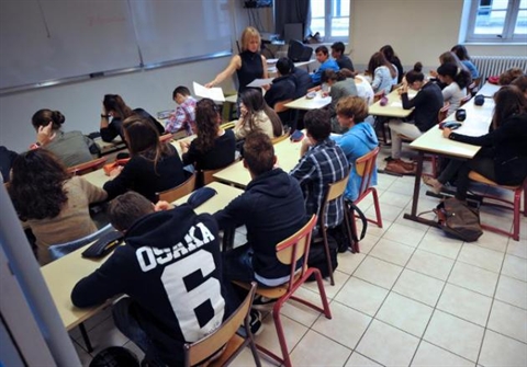 | Des élèves dans une classe le 4 septembre 2012 à Nantes (France). |