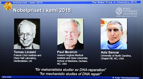 Tomas Lindahl, Paul Modrich et Aziz Sancar sont récompensés "pour leur étude de la réparation de l'ADN", qui peut être endommagé par exemple par les rayonnements ultraviolets ou des substances agressives, a expliqué le jury suédois.