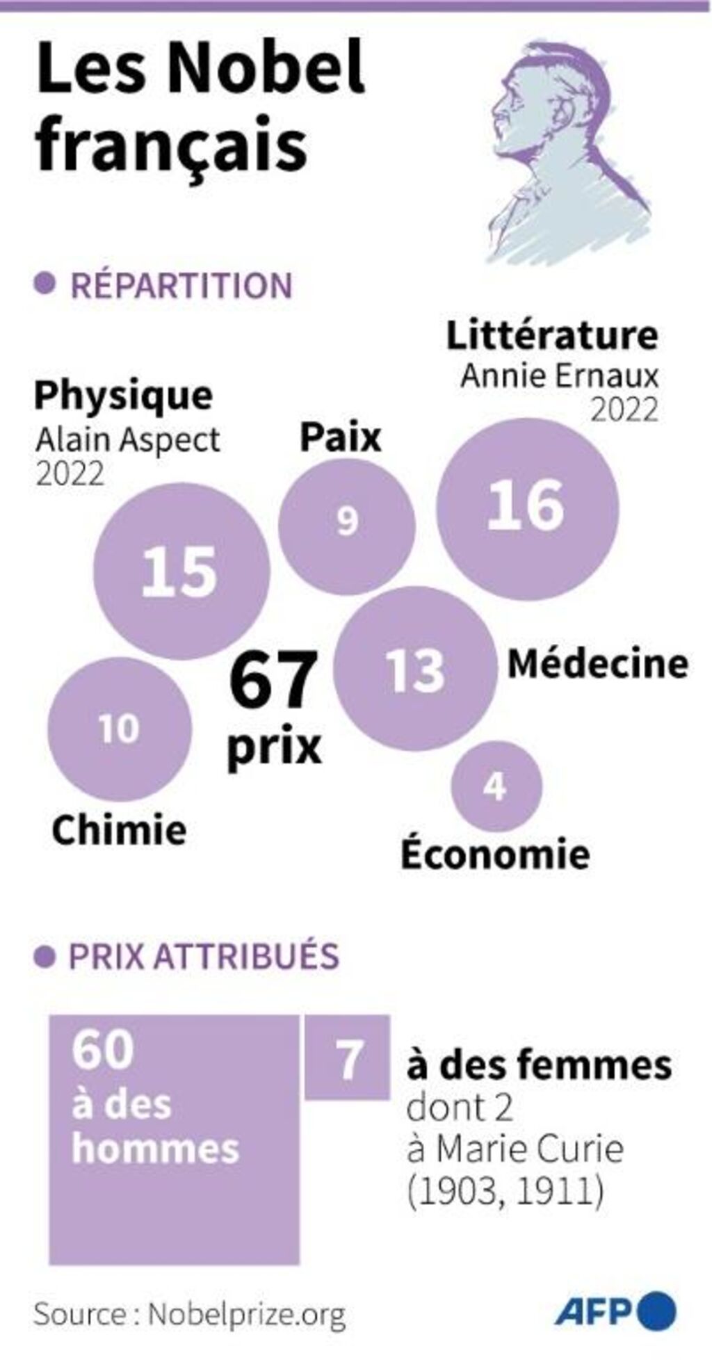 | Infographie sur les prix Nobel français par catégorie. Photo : AFP/VNA/CVN |