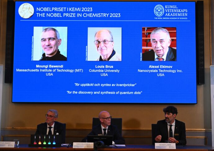 Auparavant, le Norvégien Jon Fosse avait été récompensé en littérature. Le prix de chimie a été décerné à Moungi Bawendi, Louis Brus et Alexei Ekimov pour leurs travaux sur des nanoparticules nommées points quantiques.