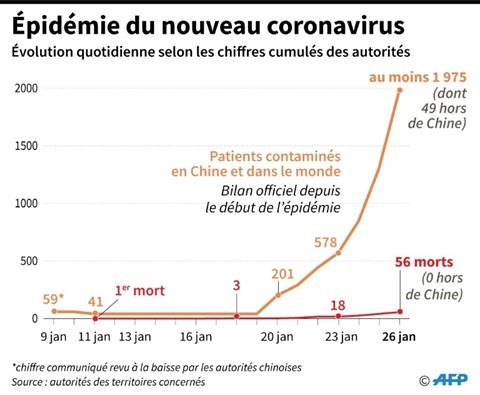 "La capacité de propagation du virus s'est renforcée", ont déclaré la veille de hauts responsables sanitaires chinois, même s'il ne s'avère pas "aussi puissant que le Sras", un précédent coronavirus qui avait fait des centaines de morts au début des années 2000.