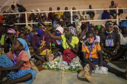 Des personnes ayant fui la ville de Palma attendent de l'aide dans un centre à Pemba, le 2 avril 2021 au Mozambique. Photo : AFP/VNA/CVN |