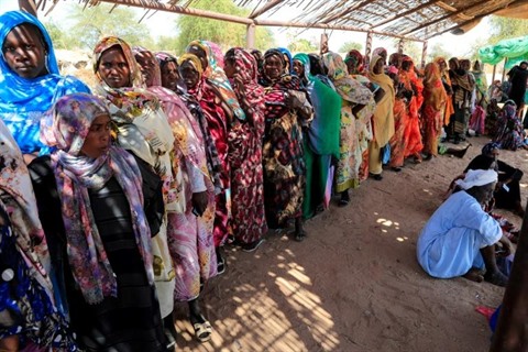 Des Soudanaises déplacées attendent une aide alimentaire au camp de réfugiés de Nyala, le 1er février au Soudan. Photo : AFP/VNA/CVN |
