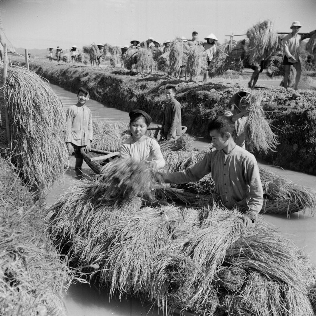 | Récolte du riz à la coopérative Mo Dao, commune de Dao Duc, district de Binh Xuyen, province de Vinh Phuc (Nord) (1963). Photo: VNA/CVN |