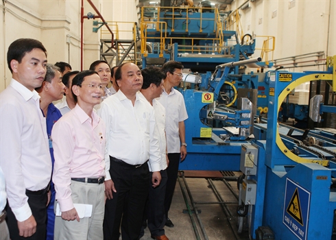 | Le vice-Premier ministre Nguyên Xuân Phuc (3e à gauche) visite un entreprise dans la province de Tuyên Quang. |