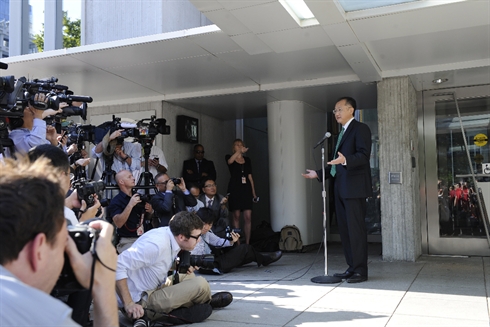 | Le nouveau président de la Banque mondiale, l'Américano-coréen Jim Yong Kim, prend la parole à la presse le 2 juillet à Washington. Photo : AFP/VNA/CVN |