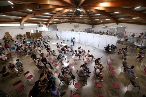 | Des personnes attendent pour se faire vacciner contre le COVID-19, le 18 juillet à Perpignan, dans le Sud de la France. |