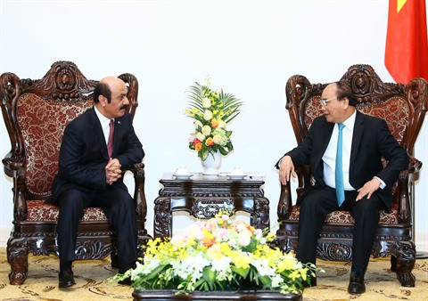 | Le Premier ministre Nguyên Xuân Phuc (droite) et le nouvel ambassadeur du Qatar au Vietnam, Mohammed El-Emadi, le 20 décembre à Hanoï. |