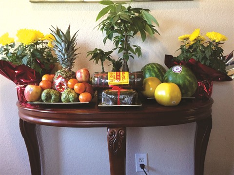 On ne peut pas parler du Têt sans aborder l’incontournable plateau aux cinq sortes de fruits déposé sur l’autel.