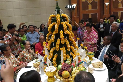 Le diplomate lao a présenté à cette occasion des traits de la fête Bunpimay, une manifestation importante du Nouvel An lao. Pendant le Nouvel An, les Lao se lancent copieusement de l’eau pour bénéficier de la chance, de la paix, du bonheur et de la prospérité. Cette fête vise à se débarrasser de toute la malchance accumulée l’année précédente.