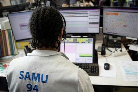 | Un opérateur du centre de régulation du Samu 94 à l'hôpital Henri Mondor de Créteil, le 6 mars 2020. |