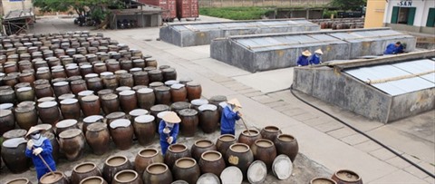 Le nuoc mam comprend deux éléments : le poisson et le sel. Des couches de poisson et de sel alternées sont conservées dans une cuve en bois pendant six mois à un an. Le liquide de couleur ambrée né du processus de fermentation est recueilli.