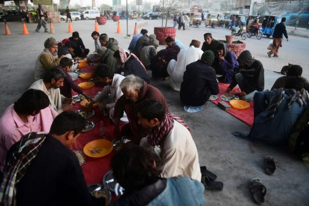 | Des repas gratuits sont proposés par des associations, à Karachi, le 1er février. |