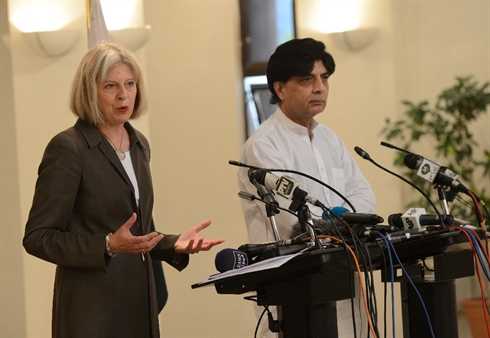 La ministre britannique de l'Intérieur Theresa May et son homologue pakistanais Chaudhry Nisar Ali Khan ont discuté de la coopération bilatérale afin de faire face aux menaces communes et réaffirmé leur engagement à coopérer sur des questions d'importance mutuelle pressante, dont l'action anti-terroriste et le combat contre l'immigration illégale et le crime organisé, a fait savoir la Haute Commission britannique.
