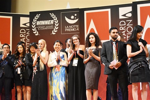 | La peintre Nguyên Thu Thuy (1er rang, 5e droite) lors de la cérémonie de remise des prix des A’Design Awards & Competitions 2017-2018. |