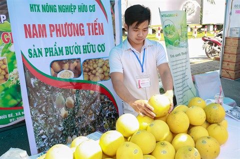 | Les pamplemousses de Nam Phuong Tiên lors d’une foire "À chaque commune son produit" (OCOP) du Nord. |