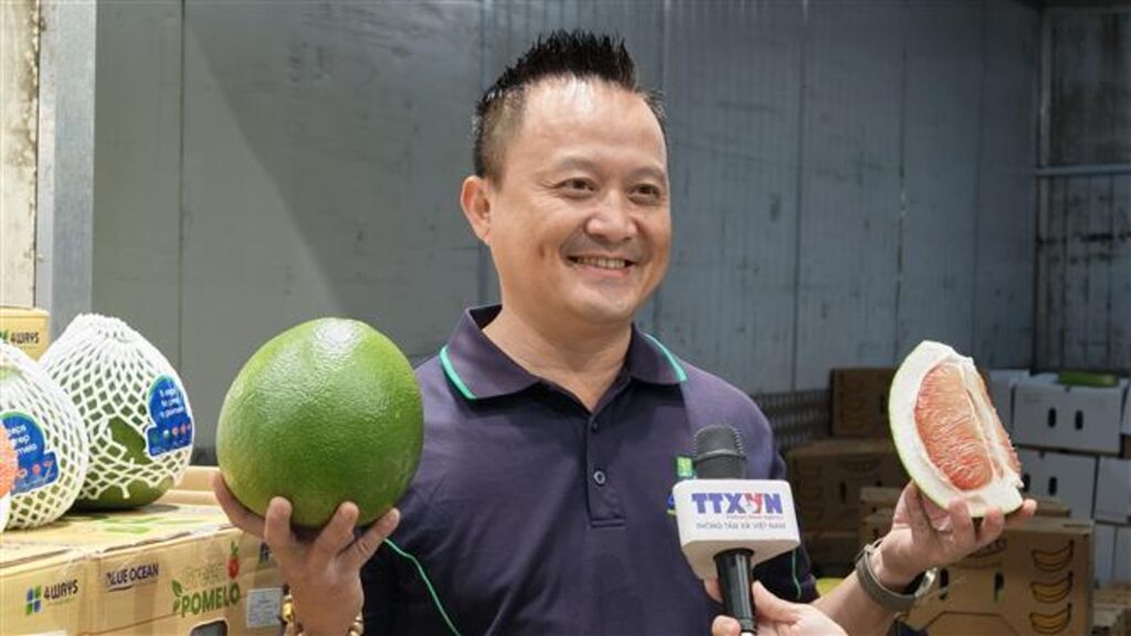 | Ly Hoàng Duy, président du groupe 4 Ways Fresh, importateur de fruits vietnamiens, confiant dans le potentiel du pamplemousse vietnamien en Australie. |
