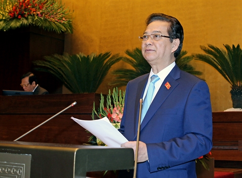 | Le Premier ministre Nguyên Tân Dung présente un rapport du gouvernement sur la situation socio-économique en 2014 et les tâches pour 2015 lors de l'ouverture de la 8e session de l'Assemblée nationale de la XIIIe législature, le 20 octobre à Hanoi |