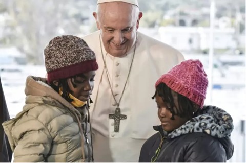 | Le pape François dans le Centre d'accueil et d'identification de Mytilene sur l'île grecque de Lesbos, le 5 décembre. |