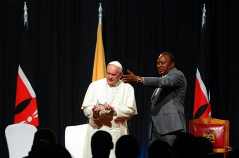 | Le président du Kenya, Uhuru Kenyatta (droite) et le pape François à Nairobi, le 25 novembre |