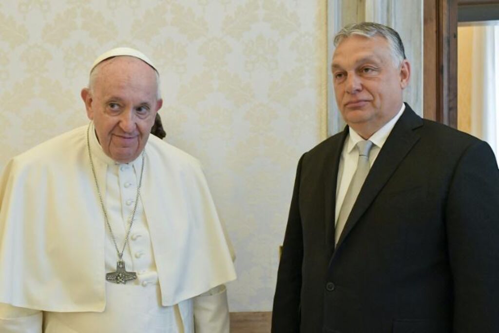 | Le pape François et le Premier ministre hongrois Viktor Orban, au Vatican, le 21 avril 2022. |