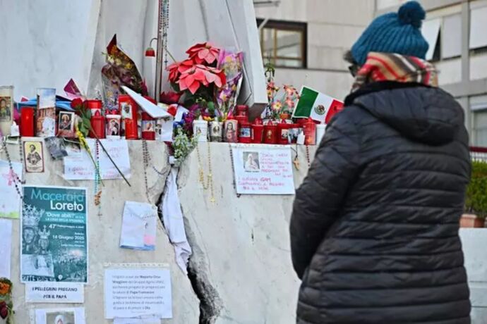 Il n'est plus apparu en public depuis son entrée au Gemelli le 14 février et seul un message audio a été diffusé le 6 mars, dans lequel il remerciait les fidèles pour leur soutien, d'une voix très affaiblie.