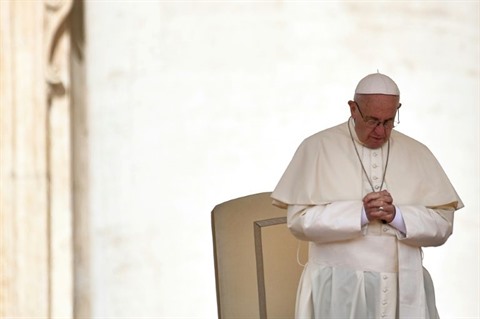 | Le pape François prie lors de l'audience générale au Vatican le 25 avril. |