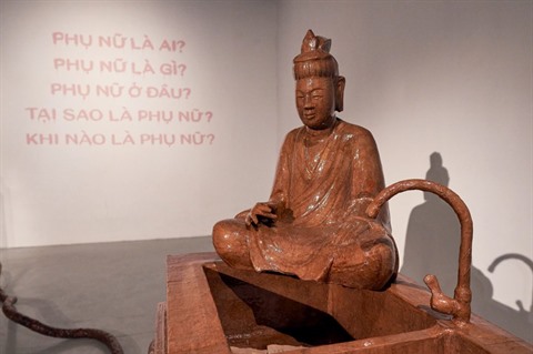 | Une œuvre sculpturale en papier "do", conçue par Lê Hiên Minh, visant à se poser des questions sur le rôle des femmes. |