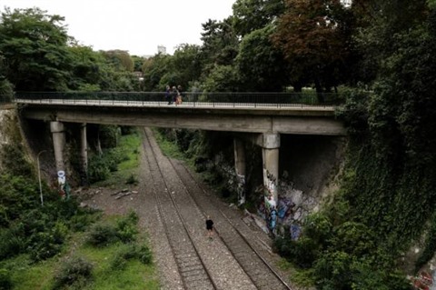 | La Petite Ceinture, cette voie ferrée désaffectée qui entoure Paris, traverse le parc des Buttes-Chaumont. |