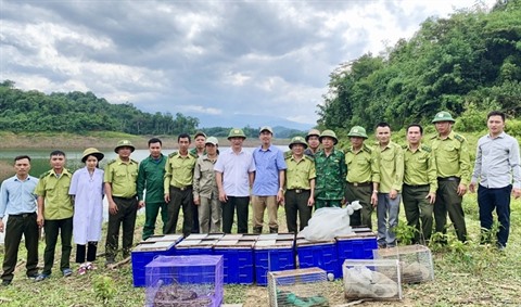 Par la même occasion, le Parc national de Vu Quang a relâché dans la nature cinq pythons molures (Python molurus), un cobra à monocle (Naja kaouthia) et deux tortues-boîtes indochinoises (Cuora galbinifrons).