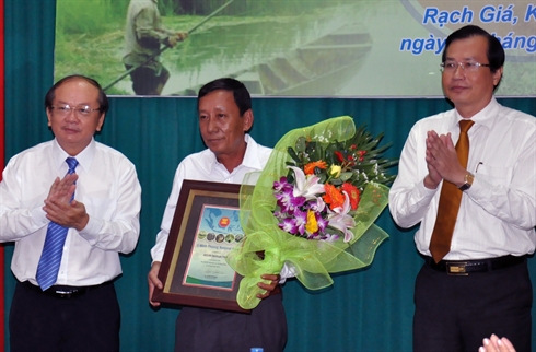 | Le vice-ministre des Ressources naturelles et de l'Environnement, Bùi Cach Tuyên (gauche), a remis le 12 août à Rach Gia, la décision sur la reconnaissance du Parc d'U Minh Thuong en tant que patrimoine naturel de l'ASEAN, à son Comité de gestion. |