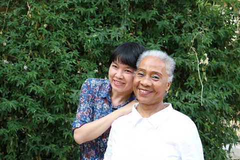 | Trân Thi Hông Mây (droite) et l’auteure dans son jardin. |