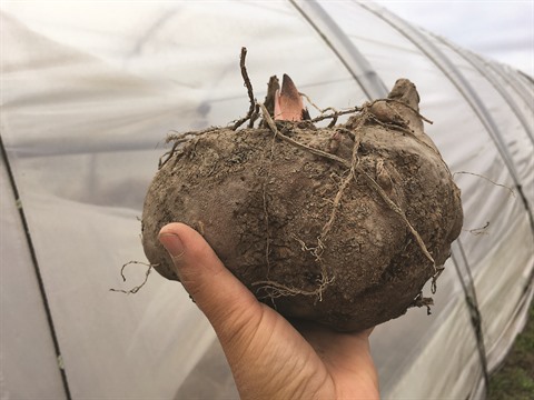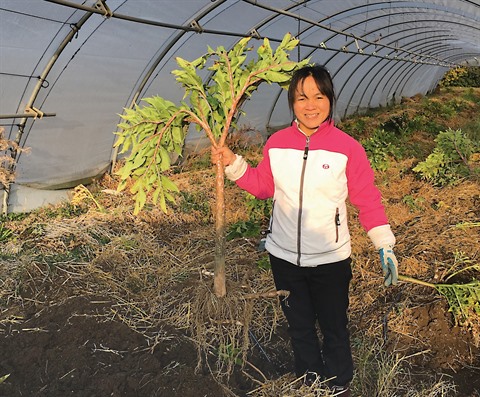 | Lê Nhung dans sa ferme expérimentale de konjac à Angers. |