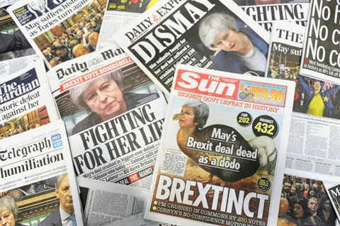 La presse britannique y voyait mercredi 16 janvier "Une humiliation complète", selon le Daily Telegraph, tandis que le tabloïd The Daily Mail juge que Theresa May "lutte pour sa survie". Aux États-Unis, le Washington Post estime que le Royaume-Uni se "dirige vers un désastre".