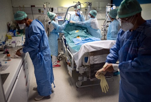 | Un patient malade du COVID soigné à l'hôpital du Muret, près de Toulouse, le 17 novembre. |