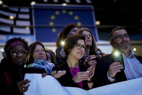 | Des députés européens écologistes participent à une action symbolique marquant le départ de leurs collègues britanniques pour cause de Brexit, le 28 janvier à Bruxelles. Photo : AFP/VNA/CVN |