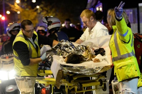 | Évacuation d'une personne blessée lors de l'attaque terroriste au Bataclan, le 13 novembre 2015 à Paris. Photo : AFP/VNA/CVN |