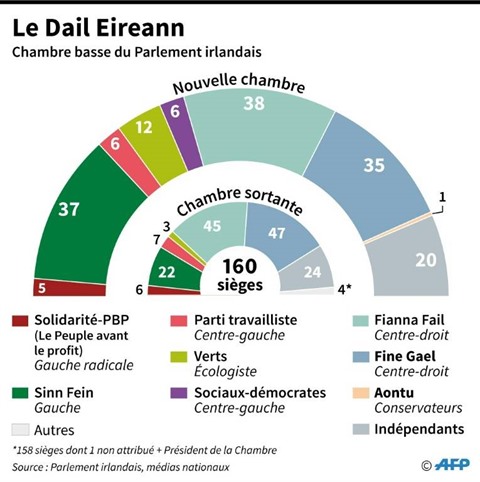 Fianna Fail et Fine Gael ont tous deux exclu de travailler avec le Sinn Fein, qui de son côté a pris des contacts avec de plus petits partis à gauche dans l'espoir de former une large alliance. Mais les chances de succès semblent minces.